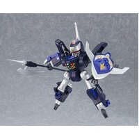?The various parts of the mecha have been separated into different colored runners, pre-painted parts and stickers, making it easy to recreate the mecha with a simple assembly. Ready-to-assemble non-scale plastic model kit. Approximately 130mm in height.