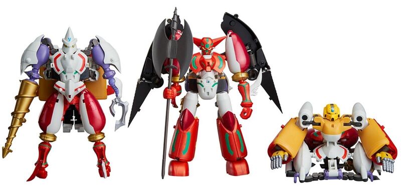 From the classic super robot series 'Shin Getter Robo Armageddon ' comes a set of the Getter Machines that can all transform just like the series! The Shin Eagle, Shin Jaguar and Shin Boar are all included, and can be combined together to recreate Shin Getter-1, Shin Getter-2 and Shin Getter-3!