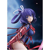 Cloth, string, leather and armor, all distinct in appearance. Packed with visual highlights, she's a showstopper from any angle. The base is designed to represent both sides of Rixiaâher identity as the Moonlight Dancer, as well as her alter ego as the legendary assassin. Painted plastic 1/7 scale complete product with stand included. Approximately 235mm in height.