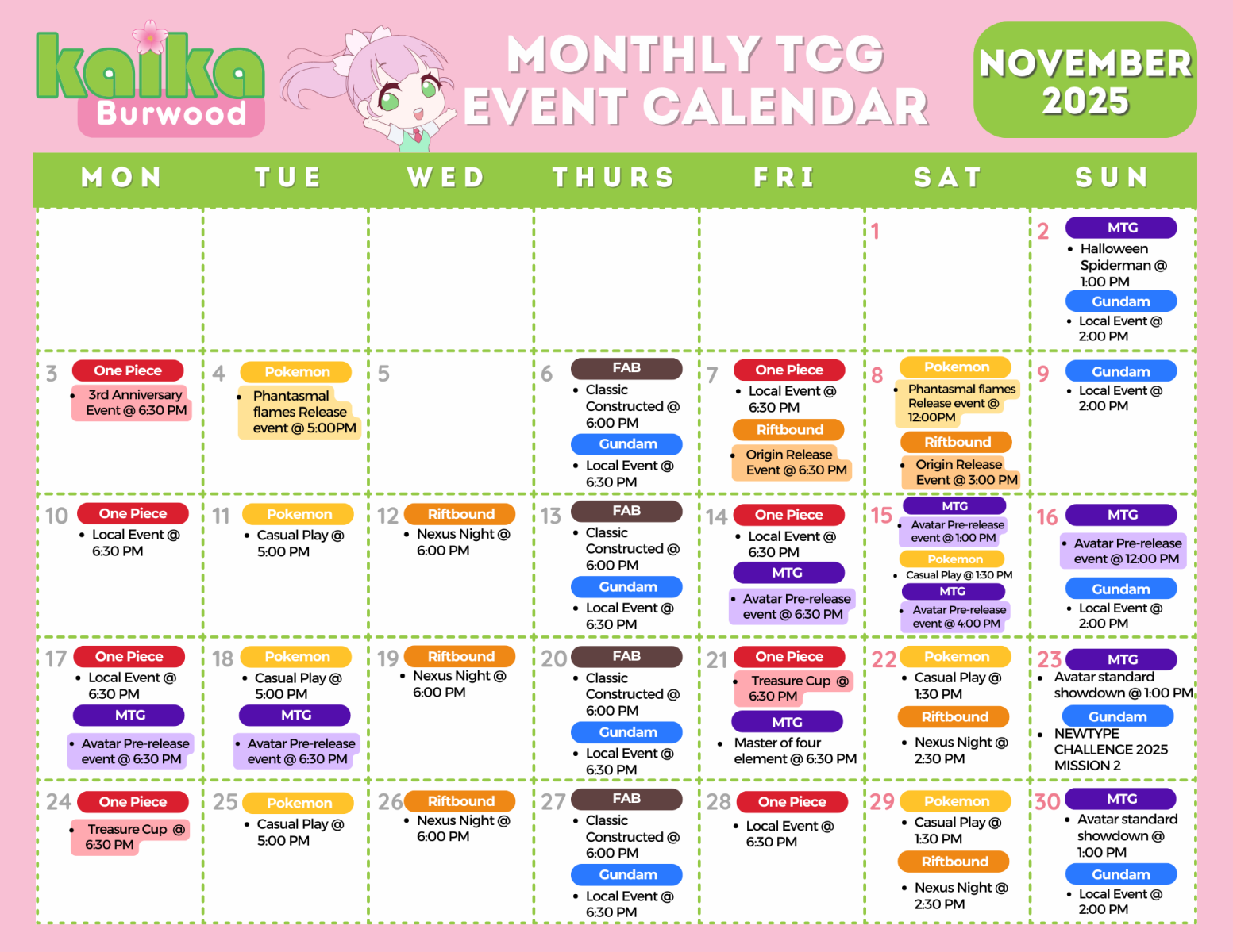 TCG Monthly Calendar 2025 November