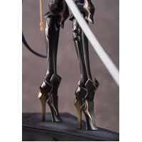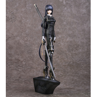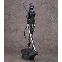 From illustrator neco's "G.A.D" series of illustrations comes a figure of G.A.D_KARASU! The figure features a chic black suit, unique leg equipment and a large sword. Her elegant physique accentuated by her suit, heavy equipment and weapon come together to create a figure that combines both roughness and femininity. Her long black hair and sharp eyes tinged with melancholy enhance the figure's charm. A mask that completely changes the atmosphere of the figure is included as well. Be sure to add this simple-yet-detailed figure to your collection, and enjoy the world of "G.A.D"! The base of the figure can be lined up and displayed with G.A.D_INU and G.A.D_TEN.