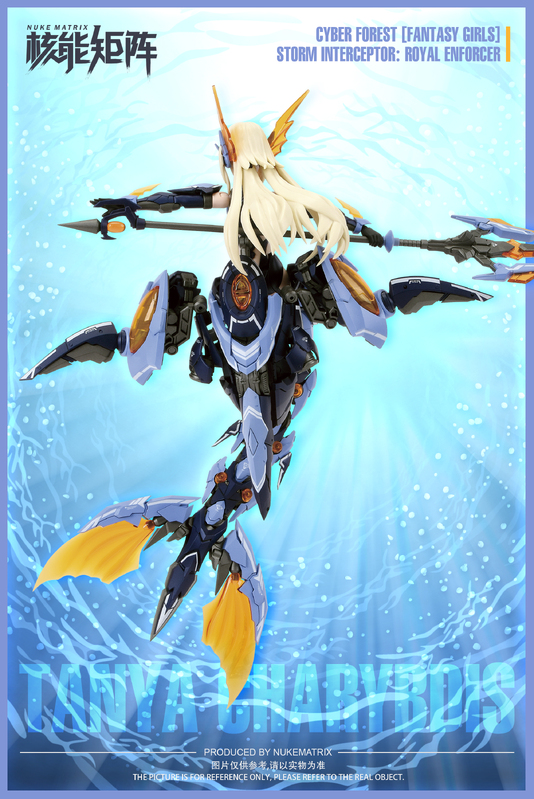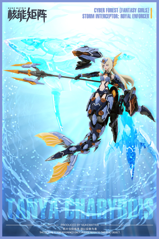 Here comes the 4th release of "CYBER FOREST FANTASY GIRLS" series plastic model kit designed and produced by NUKE MATRIX. Royal Enforcer, a new cyborg mecha girl has entered the battlefield! By combining with the killer whale-type battle support droid "Siren", she can transform into the form of a mermaid princess! Make sure not to miss this interesting product!