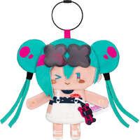 From "Hatsune Miku: Racing Miku 2025" comes keychain pouches! Perfect for storing coins, keys, earphones, and other small items. Available in two different designs, they can be used as keychains or they can be secured with snap buttons at the hands and tips of the hair! Materials: Polyester, alloy / Size: Approx. 12.6cm in height.