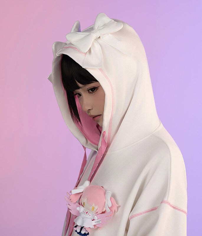 Plushies for each character that can be attached to the chest or back of the hoodie are included. Materials - Hoodie: 88% cotton, 12% polyester / Plushie: 100% polyester. Size: length - approx. 70cm, bust - approx. 123cm, shoulder width - approx. 67cm, sleeve length - approx. 53.5cm.