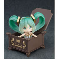 Her gramophone-inspired dress has been recreated in detail with translucent parts and gold paintwork. The Nendoroid also comes included with a box-style stand that can also be used as a storage box. Additionally, a joined hands part that can be used with Nendoroid Hatsune Miku: Symphony 2018-2019 Ver. (sold separately) to display them holding hands is included as well. Be sure to add her to your collection! Painted ABS&PVC non-scale articulated figure with stand included. Figure: Approximately 100mm in height/Stand: Approximately W95mm x D95mm x H65mm