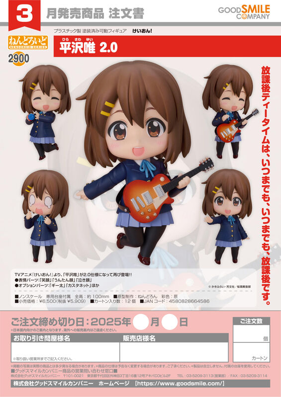 From the anime "K-ON!" comes a renewed version of Nendoroid Yui Hirasawa!