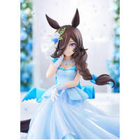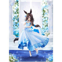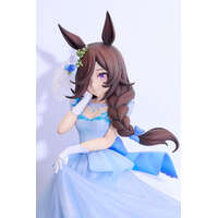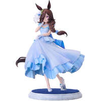 From the game "Umamusume: Pretty Derby" comes a scale figure of the shy and kind-hearted Rice Shower in a wedding dress! The figure features Rice Shower dressed in a beautiful wedding dress, wearing a smile befitting a muse that brings smiles to everyone. Her pale blue dress has been sculpted to give it an airy and light atmosphere. Careful attention has been paid to details such as her various accessories and the lace that embellishes the hem, giving the figure a delicate and dreamy appeal. Be sure to add this beautiful figure of Rice Shower to your collection! Painted plastic 1/7 scale complete product with stand included. Approximately 235mm in height.