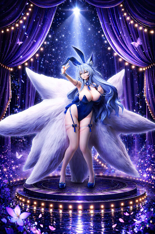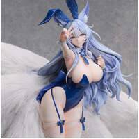 Her characteristic nine tails, made of synthetic fur, are thick and soft to the touch, and you can display her with these tails in various positions thanks to the simple boning included. Everything from her long flowing hair to her ears and accessories has been sculpted with great attention to detail. The allure of Shinano in her bunny outfit has been captured with a level of fullness only possible in 1/4 scale size. Be sure to add her to your collection! Painted 1/4 scale plastic complete product. Approximately 500mm in length and 480mm in height.