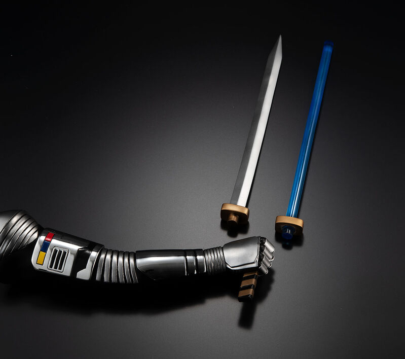 The second setting plays the "Gavan Dynamic" music from the climax scene while lights all over together with the Laser Blade on his right arm light up! An optional arm part allows the model to be displayed using the final attack with the Laser Blade in the climax of the series, and both a Laser Blade and a standard blade are included to switch between.