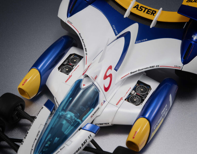 To celebrate the 35th anniversary of Future GPX Cyber Formula, the VA Hi-SPEC Super Asurada AKF-11 returns with a brand-new look! Realistic markings have been added throughout the body, imagining the Super Asurada AKF-11 as a real racing machine, combined with rich, refined paintwork for an even more realistic finish.